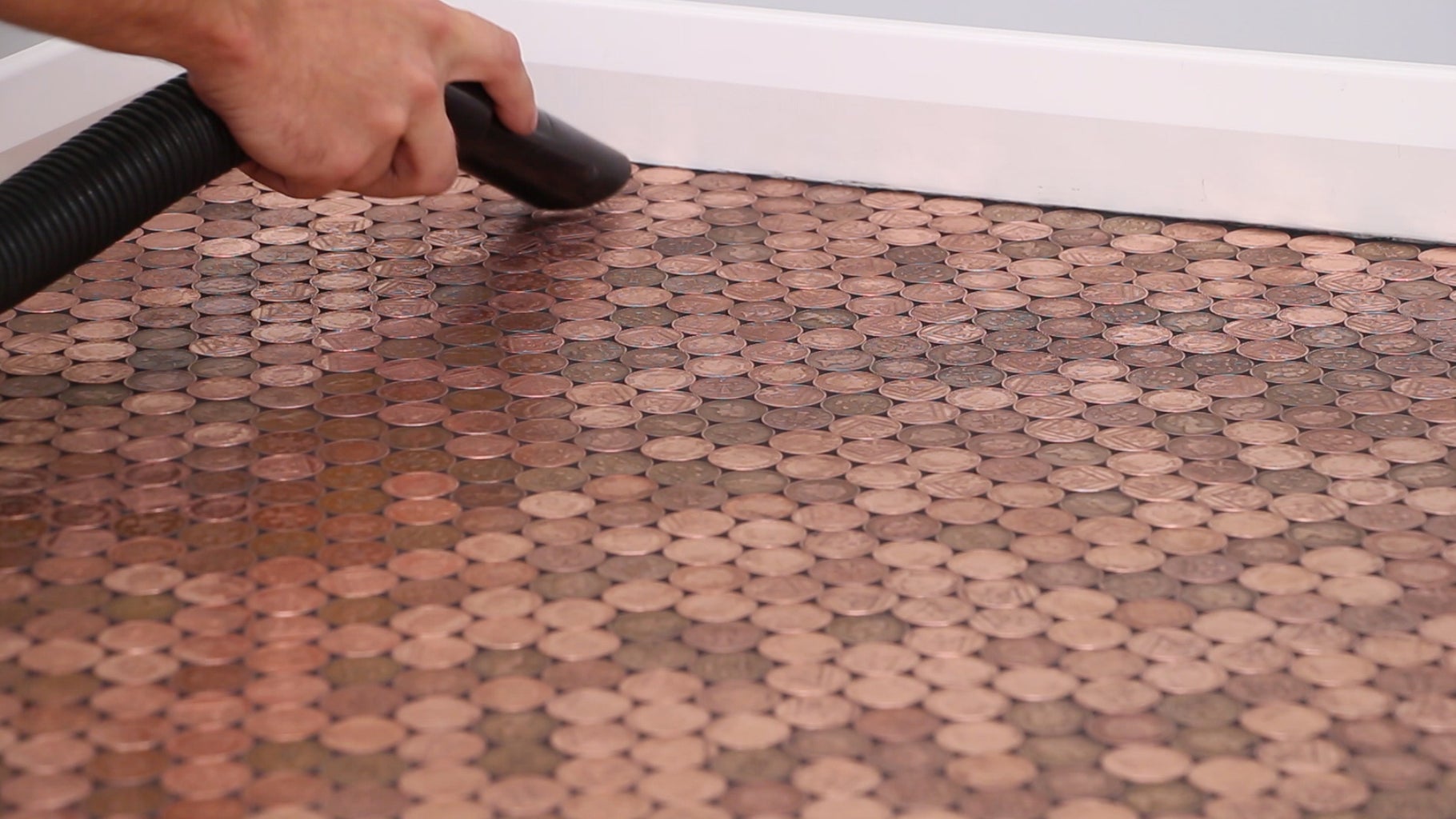 The Uk Penny Floor Project How We Took 27 000 1p Coins And Created A Penny Floor Youtube Penny Floor Flooring Copper Penny